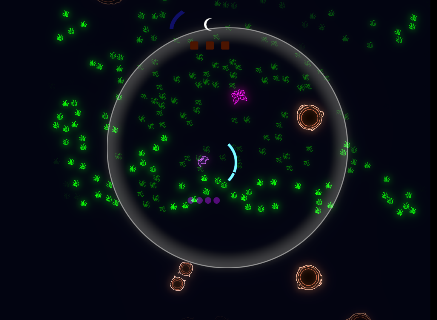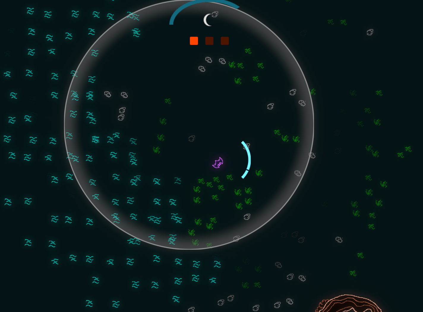 I don’t think I’ve found every kind of critter and plant yet, but I haven’t noticed any noteworthy differences in them either. Different critters move in different ways, and different plants may or may not be obstacles. If it were any less stressful (or my computer didn’t frame-stutter) I’d love to see how far I can go and explore the area.