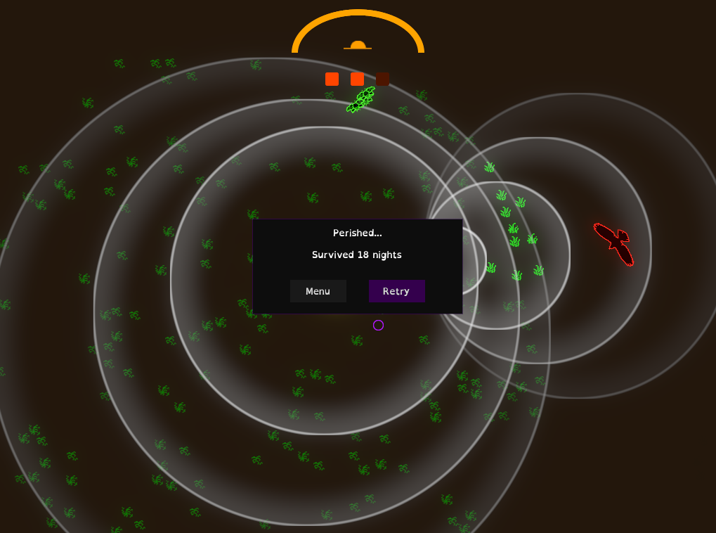 Loved this! The aesthetic is really cool and the incentive for risking the hawk's wrath to get an extra swoop is great. :D A choice of different perks would be good for extra roguelikeyness. The only issue for me is the lack of ramping difficulty, it seems to get easier over time :)